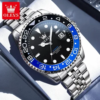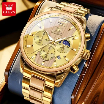 OLEVS 3670 Men Watch Fashionable Moon Phase Quartz Watch Waterproof Luminous Automatic Date Stainless Watch Gifts Reloj