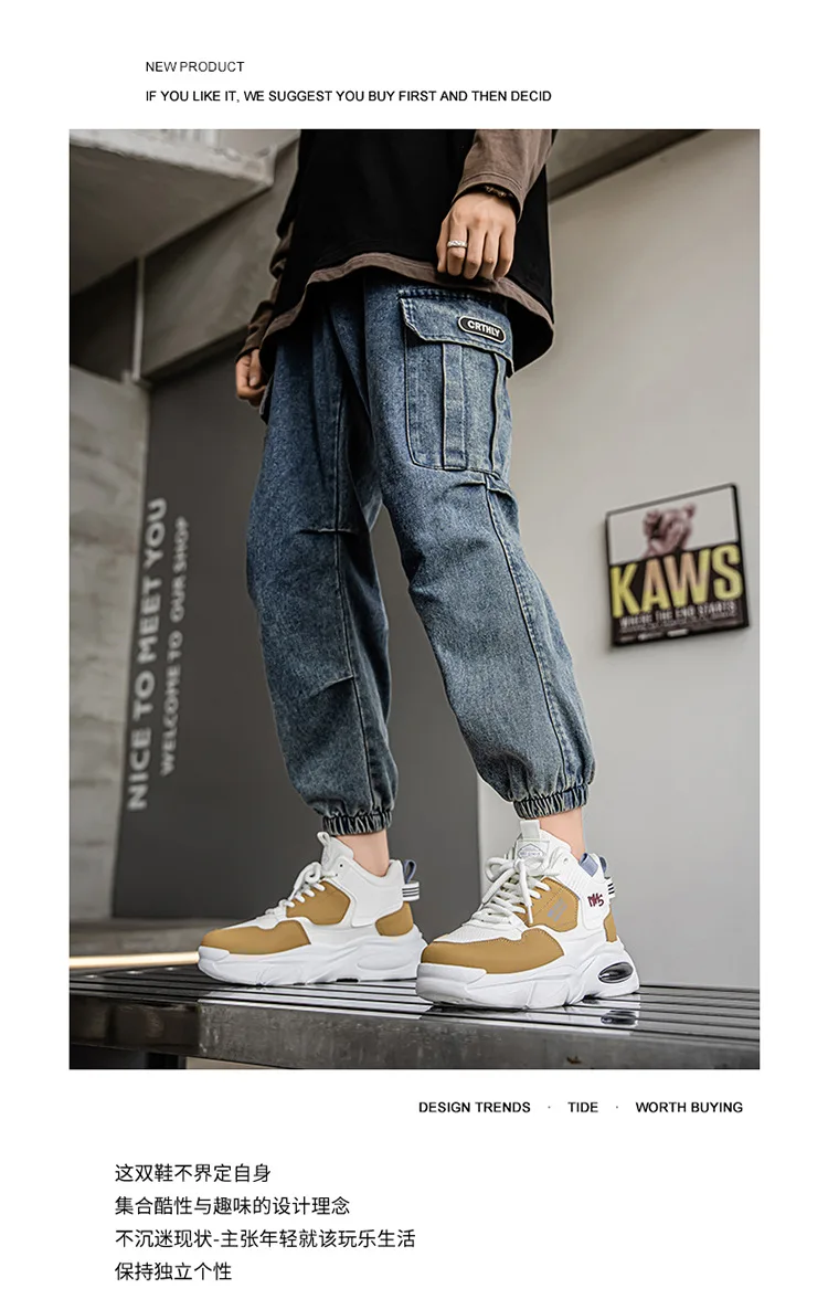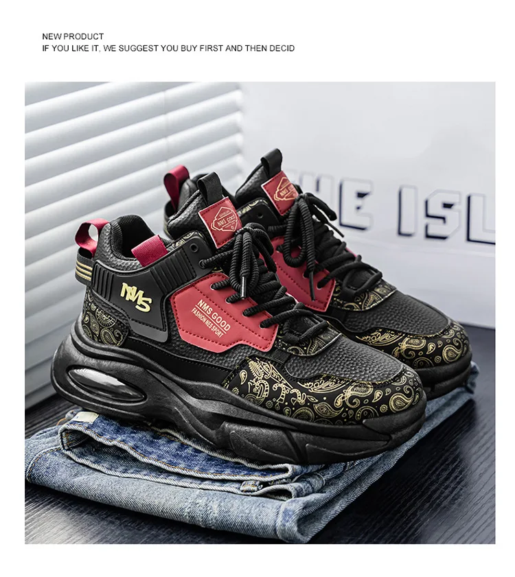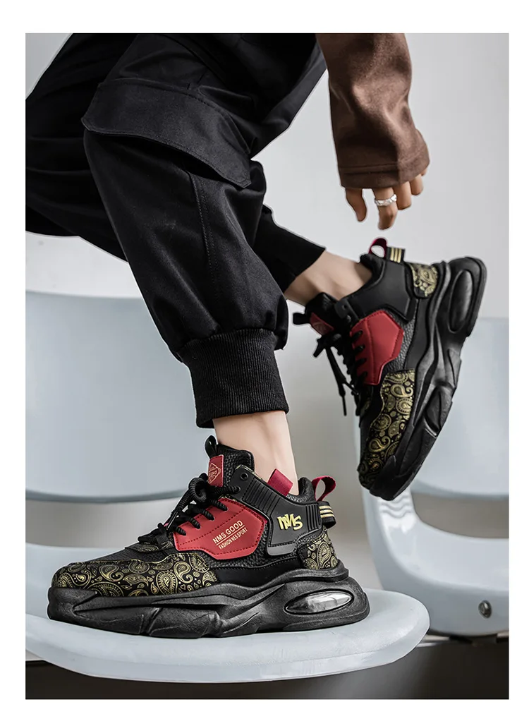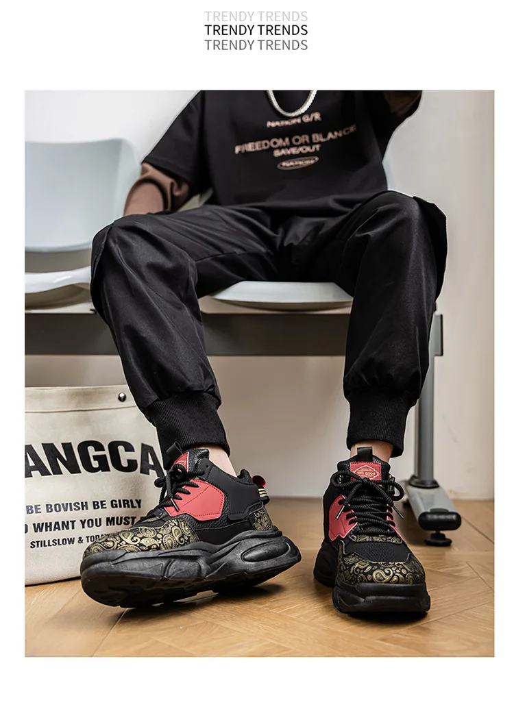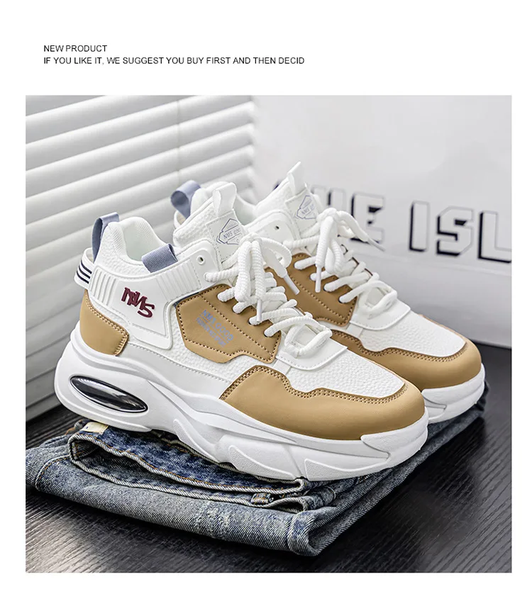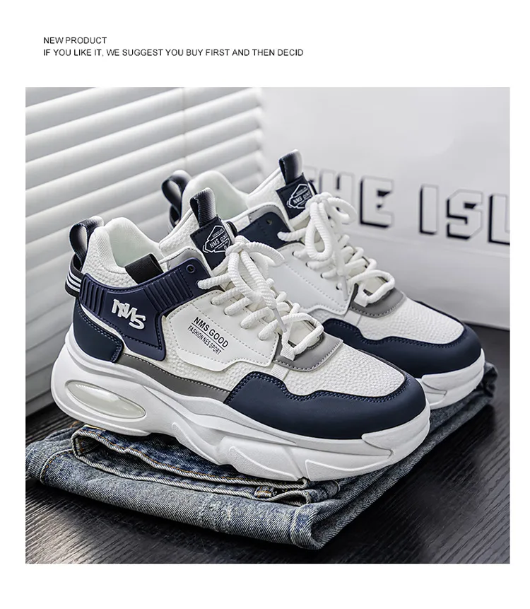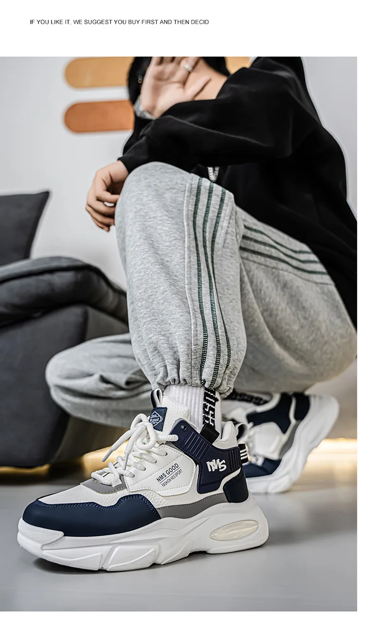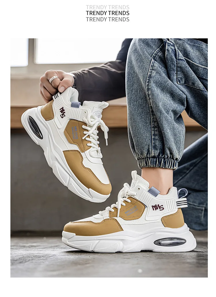 2025 Autumn Men’s Shoes New Breathable Youth High Top Sneakers Trendy and Versatile Thick Bottom Casual Dad Shoes Men