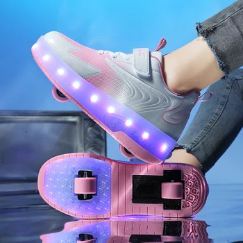 Kids Sneakers USB Recharge Light Up Skates Shoes Boys Girls Casual Skateboarding Shoe Roller Skate Outdoor Sports Shoes With LED