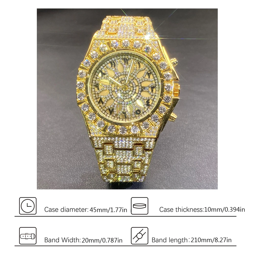 Luxury Gold Men Watch Waterproof Stainless Steel Iced Bracelet Full Diamond Watches For Male New Dial Work Trend Clock Gift