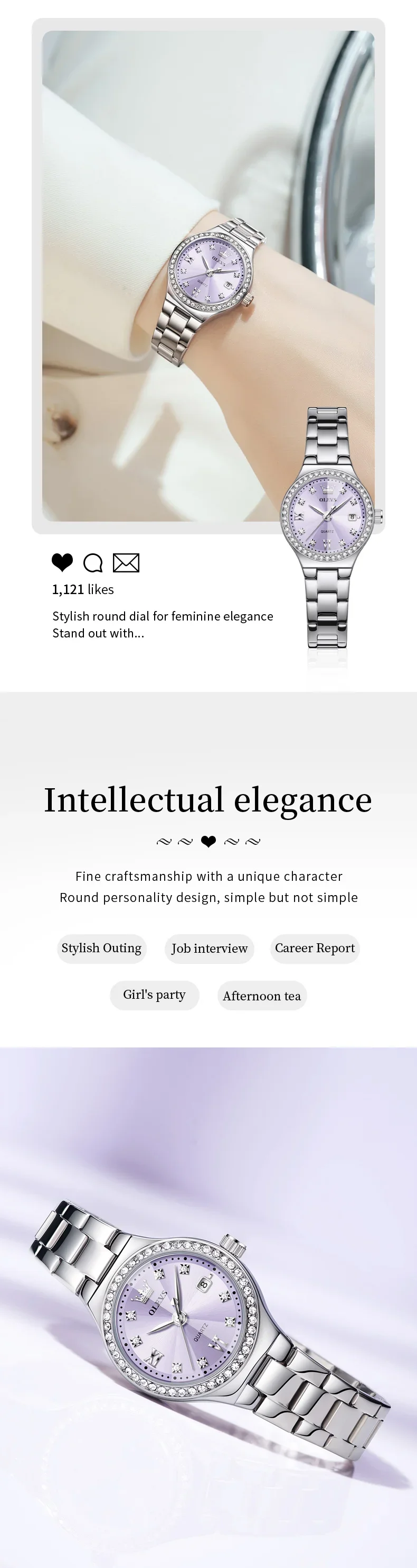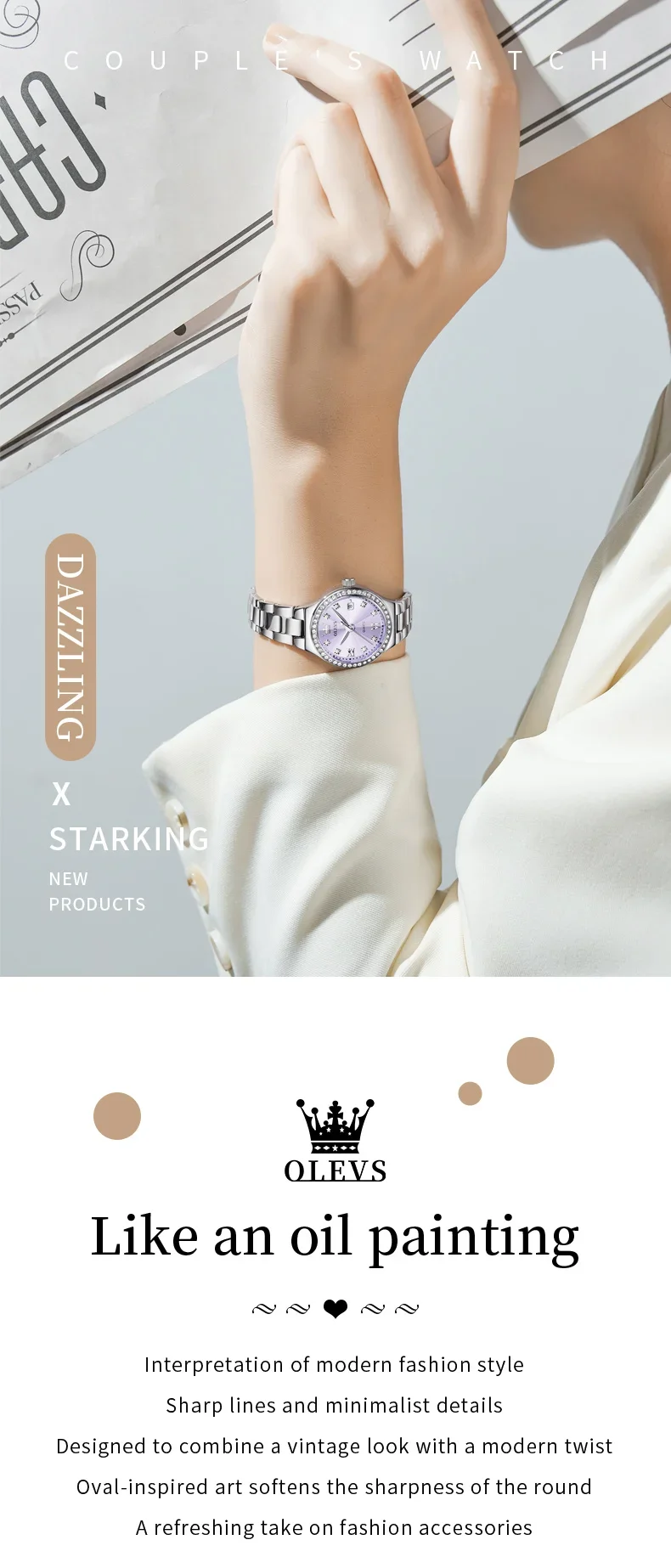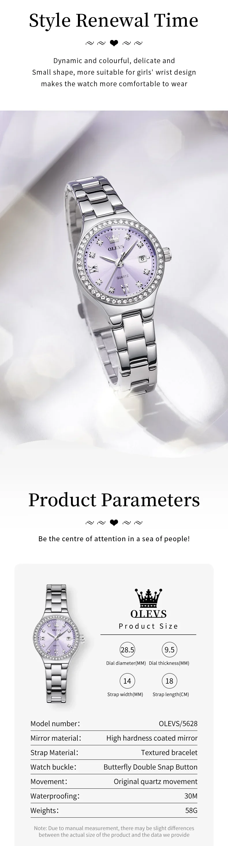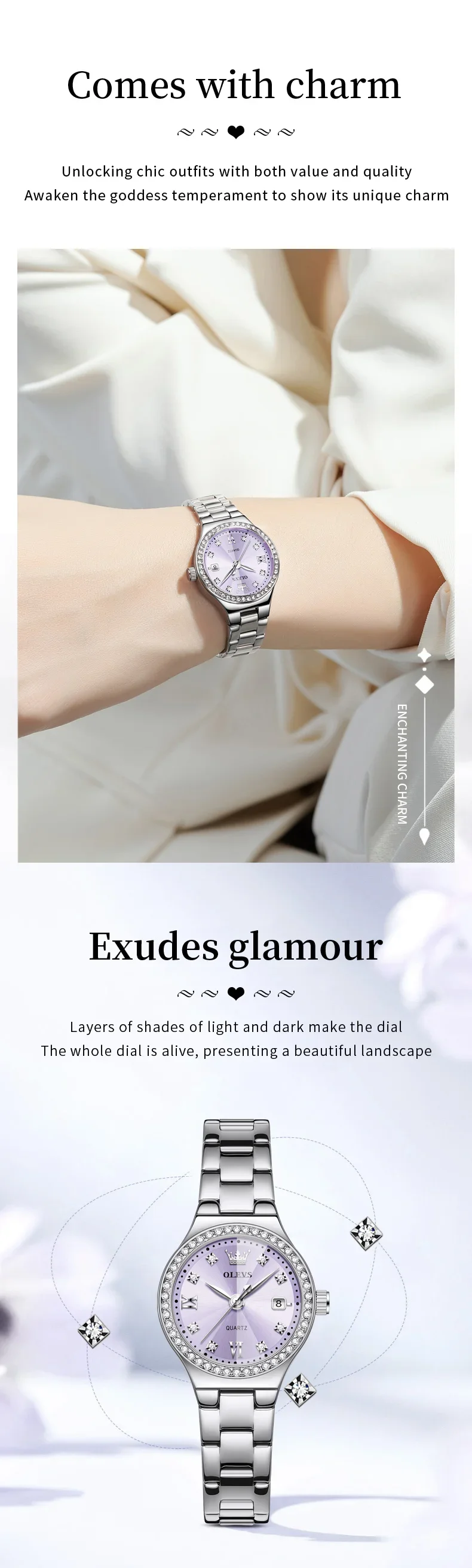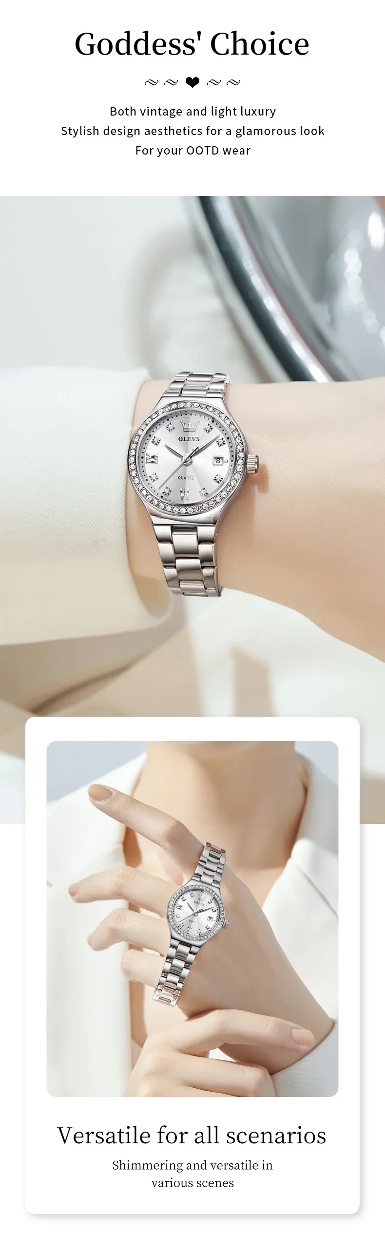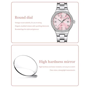 OLEVS 5628 Women’s Quartz Watch Stainless Steel Luminous Waterproof Wristwatch with Diamond Scale And Date Function