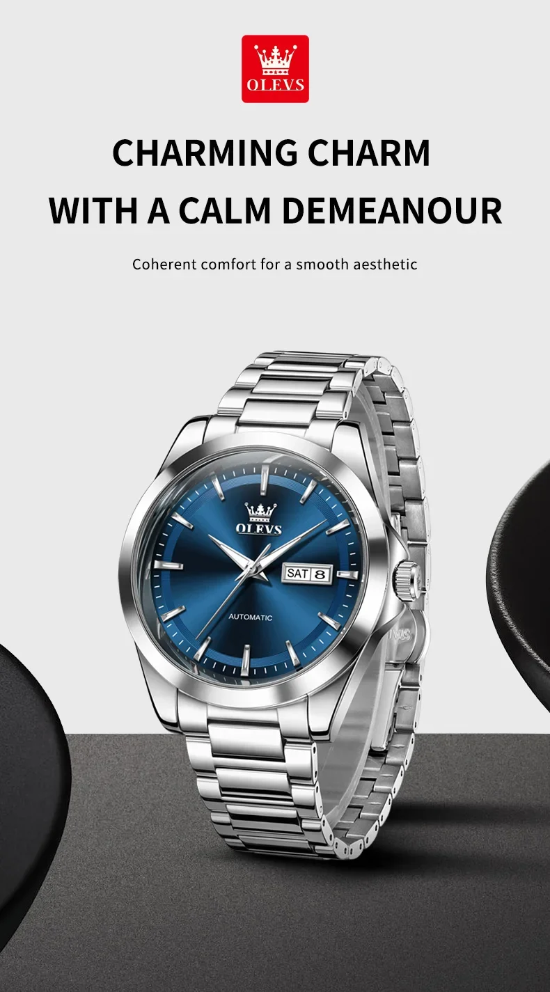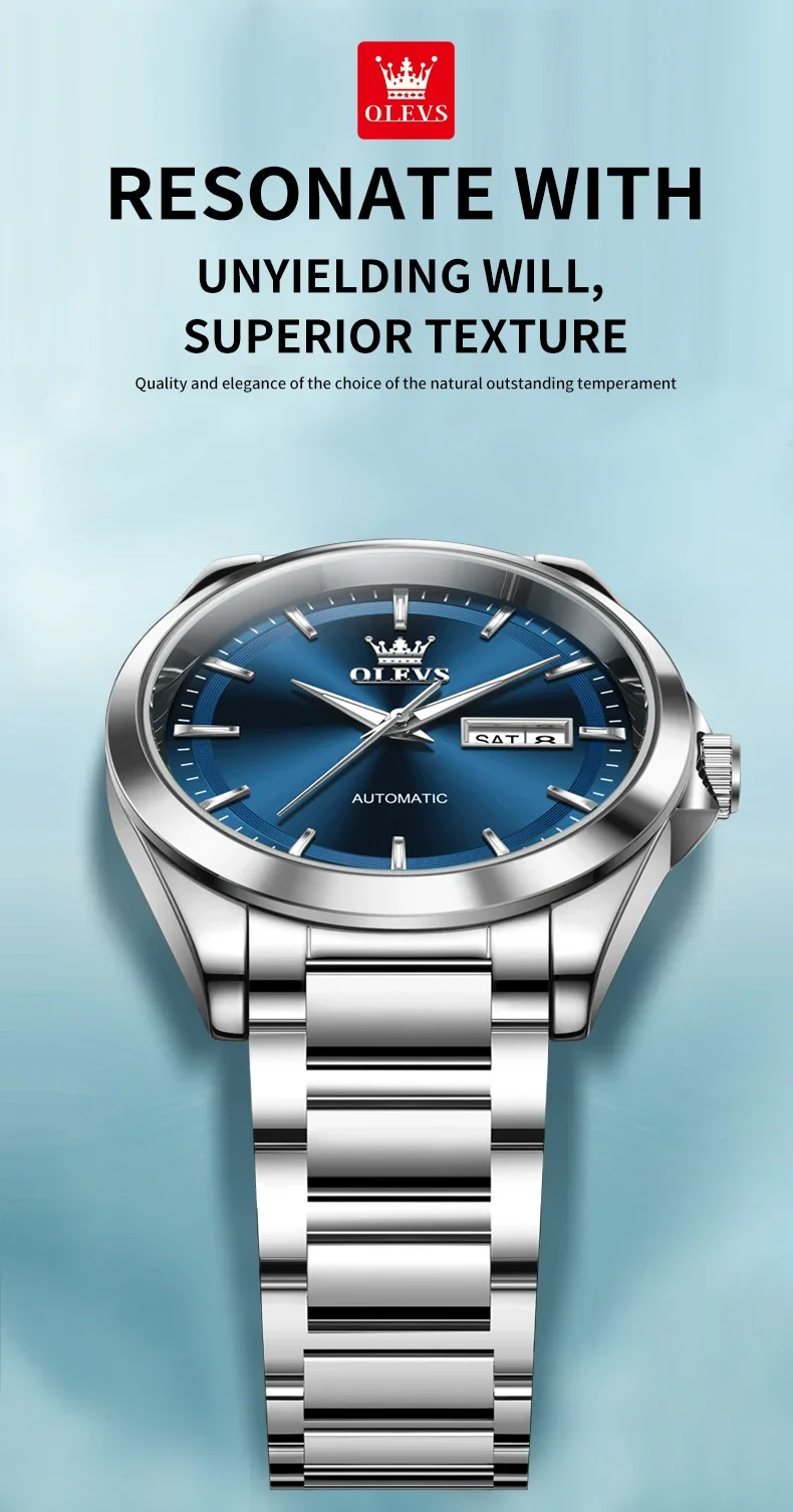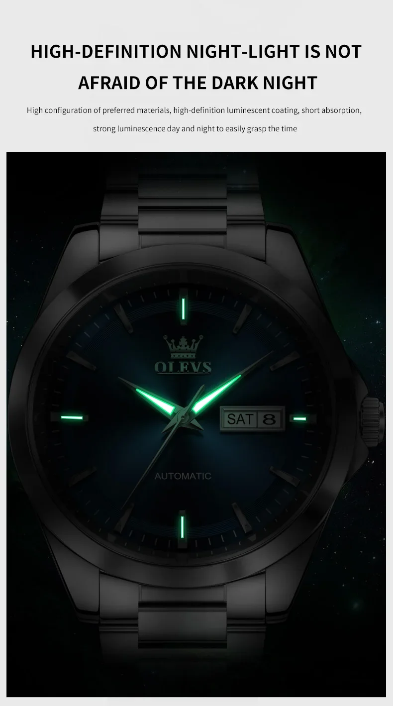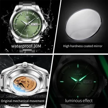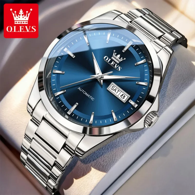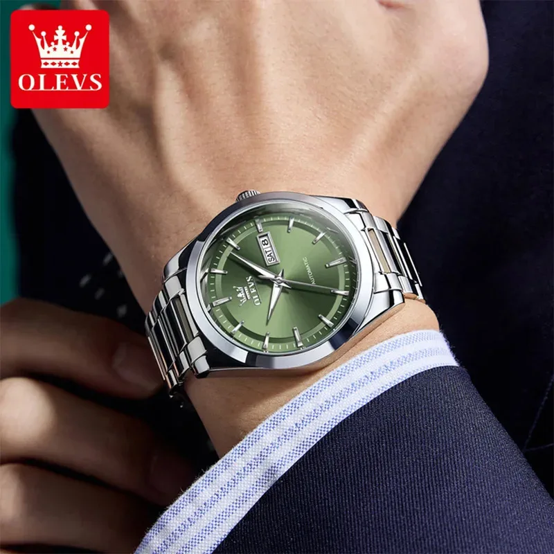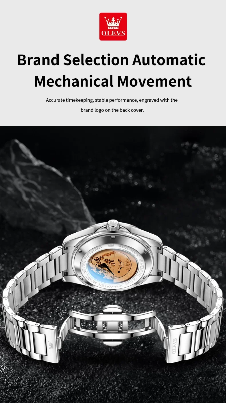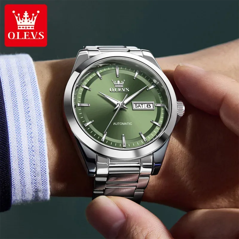 OLEVS 7090 New Automatic Watch Men Luxury Minimalist Style Dual Calendar Waterproof Business Mechanical Watch