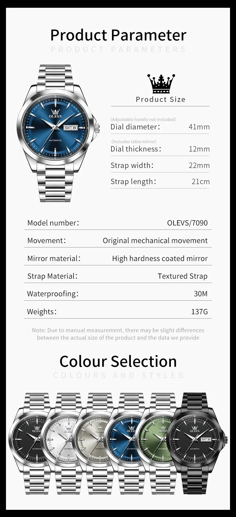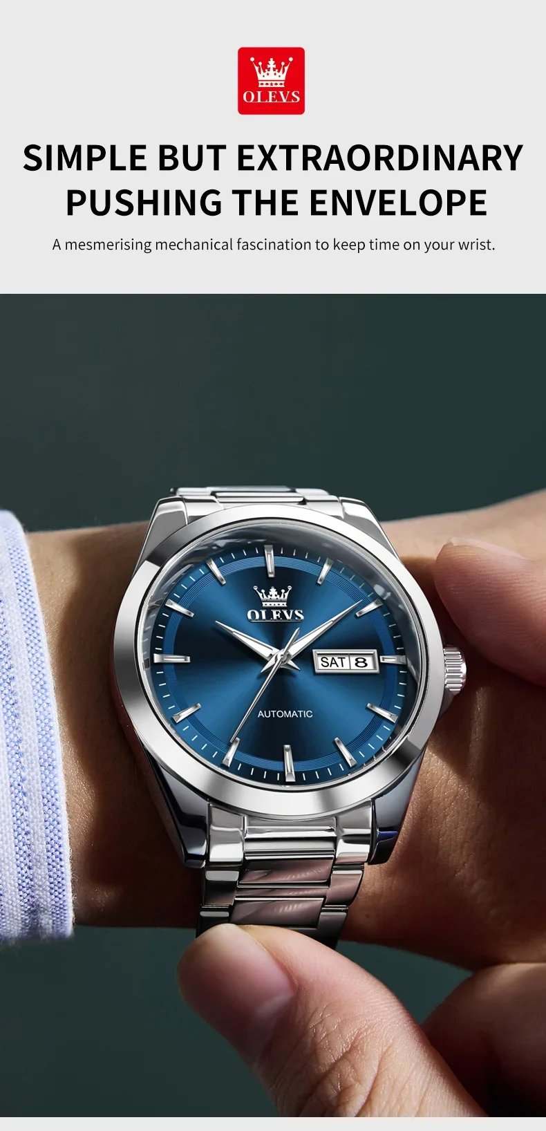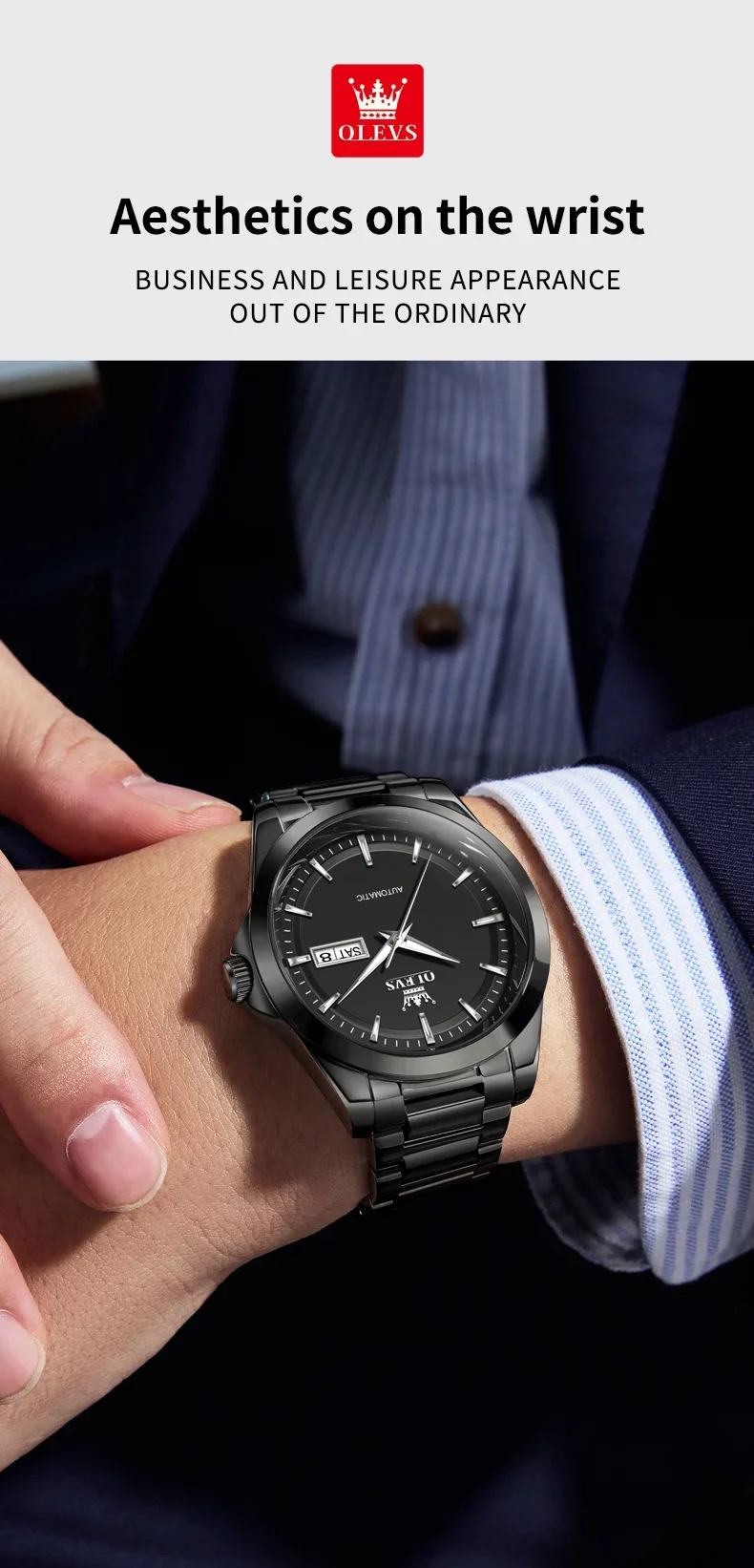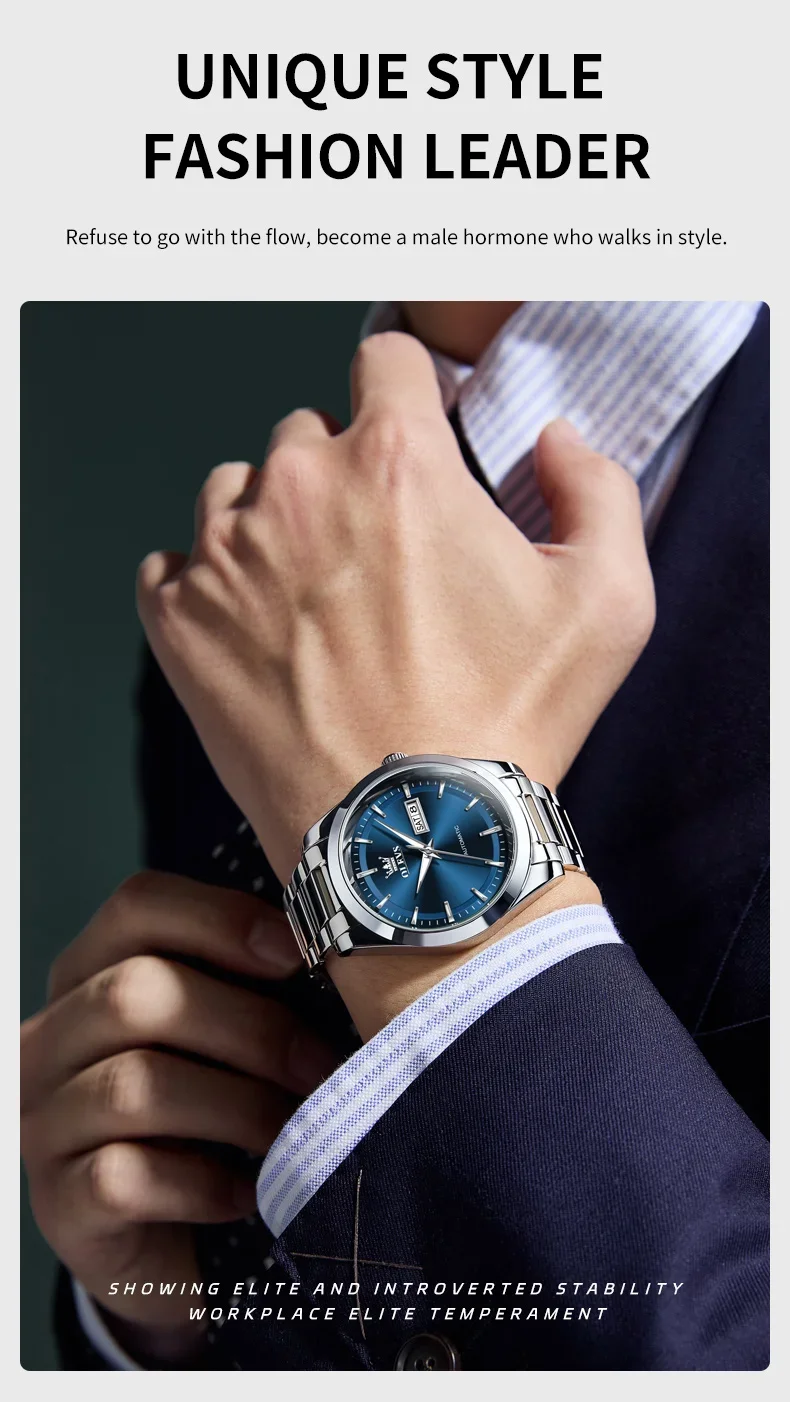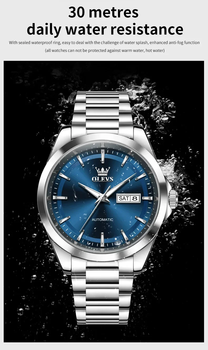 OLEVS 7090 New Automatic Watch Men Luxury Minimalist Style Dual Calendar Waterproof Business Mechanical Watch