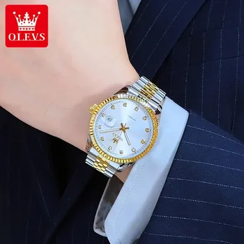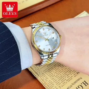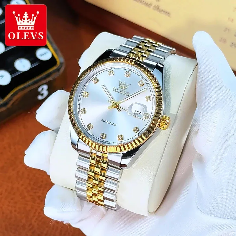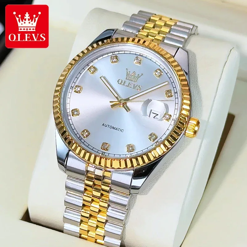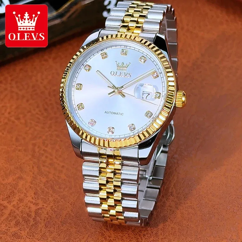 OLEVS Luxury Men’s Watches Top Fine Steel Automatic Mechanical Wristwatch Waterproof Luminous Big Date 6743 New