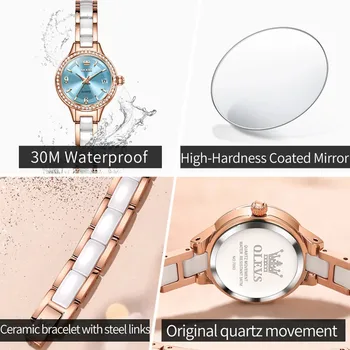 OLEVS Luxury Quartz Watch Women Elegant Ceramics Strap Waterproof Auto Date Luxury Lap Ladies Watches 7093