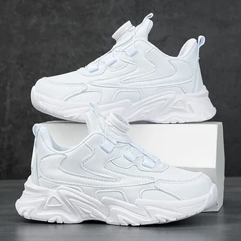 Children Shoes White Boy Sneakers Mesh Leather Platform Fashion Kids Casual Sneakers 6 To 12 Years Sports Tennis Shoes for Boy