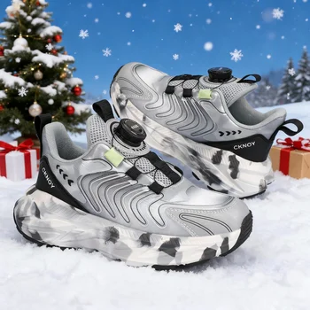 Children Sports Shoes New Knob Buckle Anti Slip Wear-resistant Basketball Shoes Fashionable Breathable Sports Mesh Walking Shoes